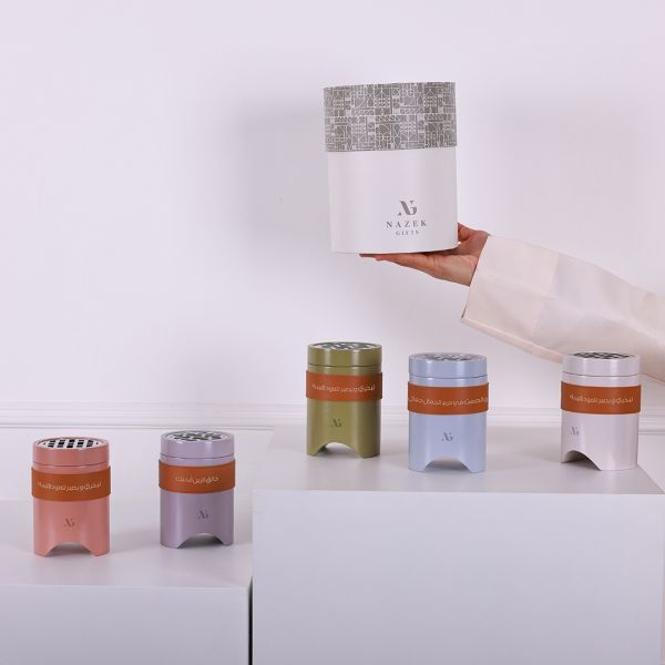 مبخر آمن للشعر والملابس يمكن طلبه مع حزام جلدي يكتب عليه اسم العائلة