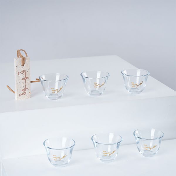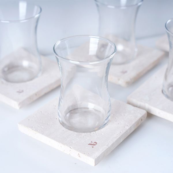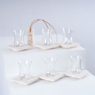 6 استكانات للشاي مع اطباق من حجر الترافرتين