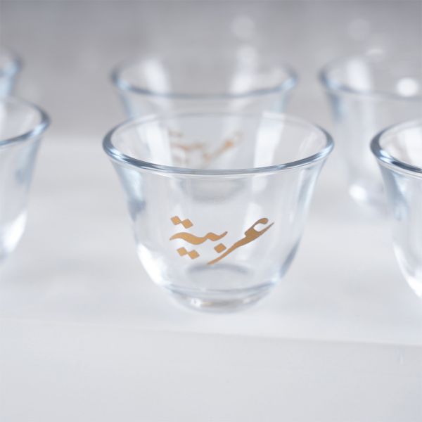6 فناجين قهوة مزينة بعبارة "عربية"