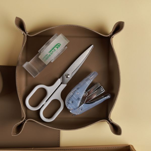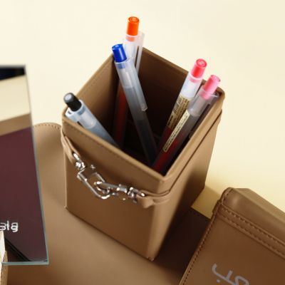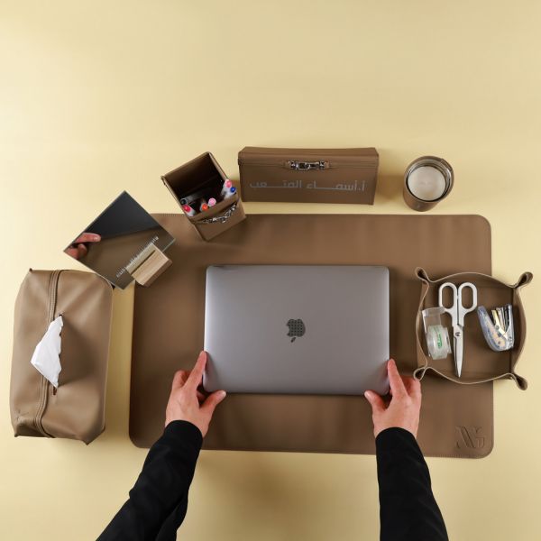 "طقم مكتب من الجلد بقفل معدني يتكون من 7 قطع