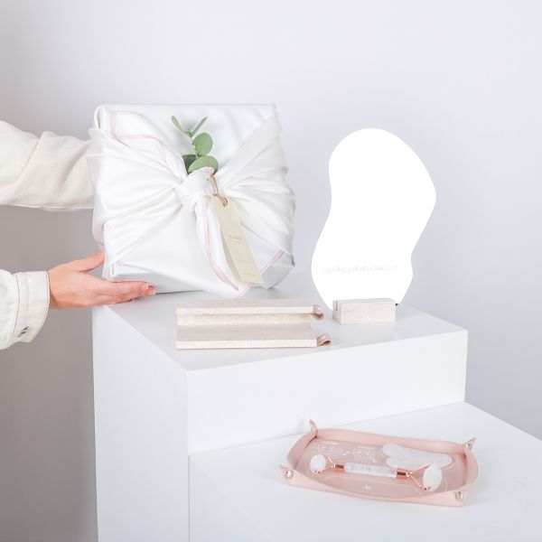 داخل علبة أنيقة بتغليف قماشي.