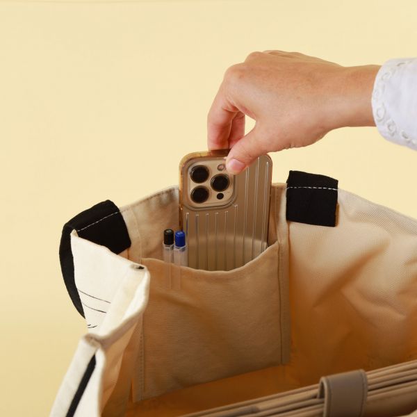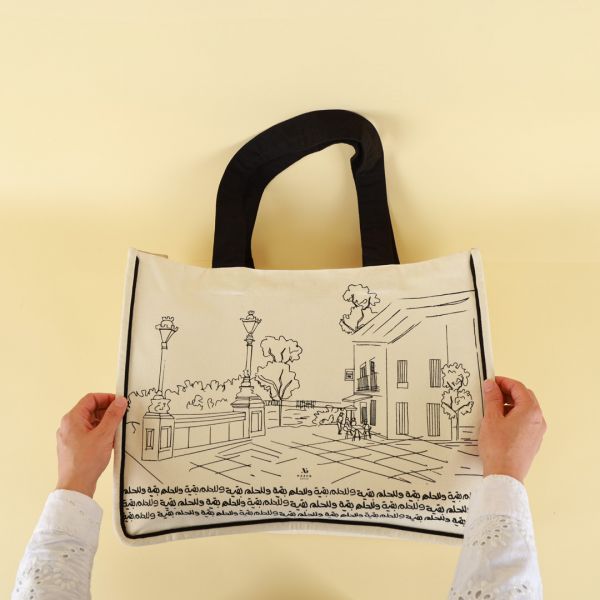 حقيبة قماشية برسم يدوي بعبارة و للحلم بقية مع جيب داخلي حجم الحقيبة (10x37x47سم)