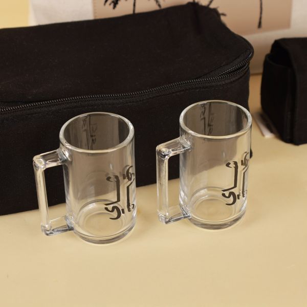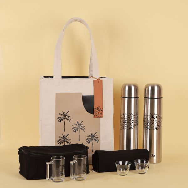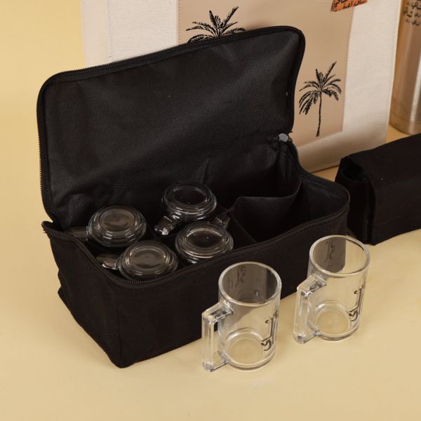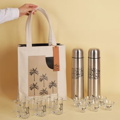 The bag is designed to carry a tea and Arabic coffee thermos, as well as cups and glasses.
