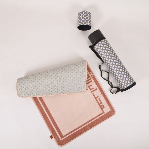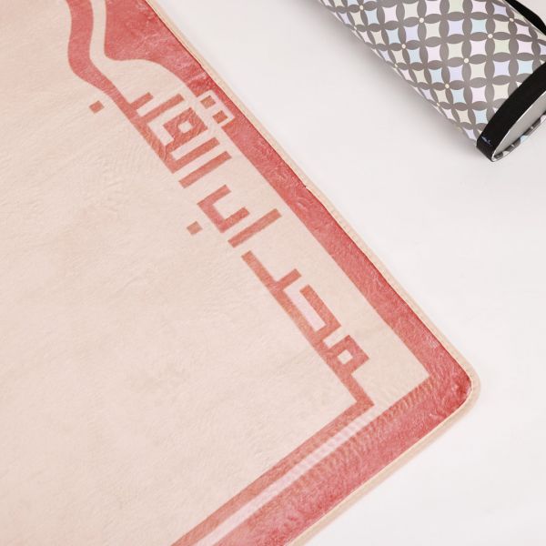 A comfortable prayer mat made of high-quality foam, featuring the phrase **"محراب القلب"**. It provides support and softness during prayer. Available in three elegant colors: taupe, nude, and grey.