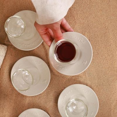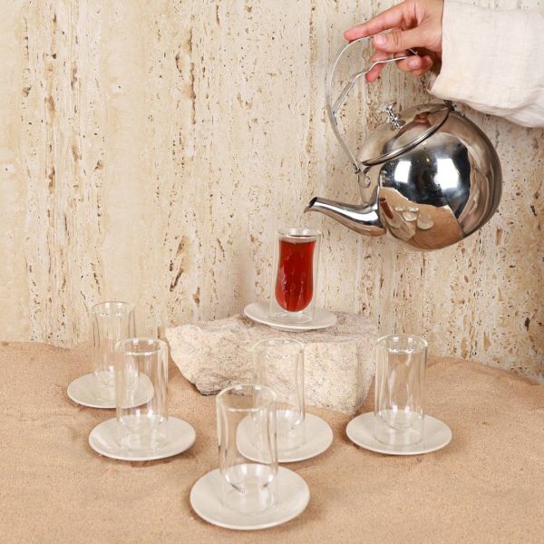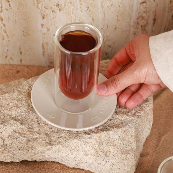 This set beautifully blends authenticity with practicality — the artisanal ceramic plates add a touch of warmth and charm, while the double-walled glass cups help maintain the temperature of your drinks for longer, making it perfect for serving tea.