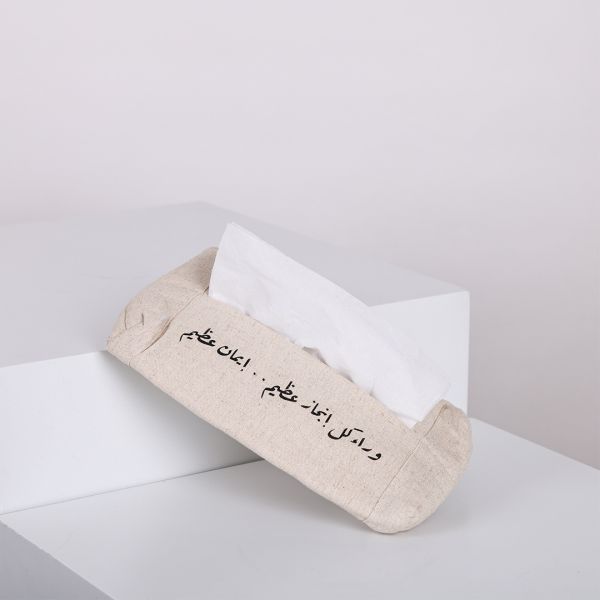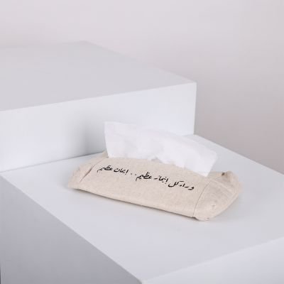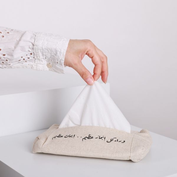 Hand Sewn Fabric Tissue Bag in Nude with Handmade Printing With Phrase “Great Faith”